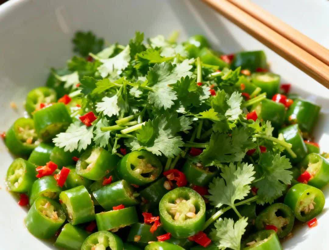 2.香菜拌青椒——清爽解腻,抗炎又开胃