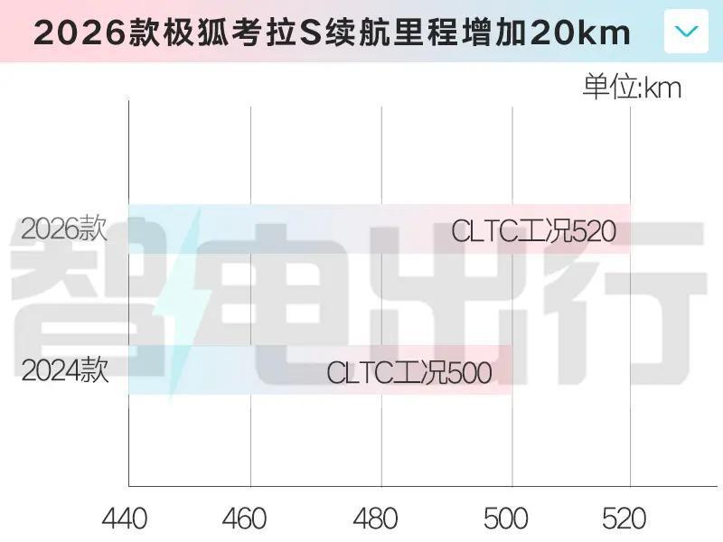 2026款极狐考拉S在续航、动力和配置上都有调整。老款续航500km,新款提升到520km,搭载宁德时代磷酸铁锂电池,满足日常一周通勤的充电需求。最大功率从120kW提升至150kW,峰值扭矩从240N·m提升至255N·m。